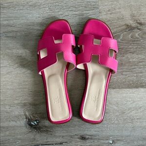 EUC [Galerie des Tanneurs] Pink Leather H Slide Sandals Moroccin Made Womens 7.5