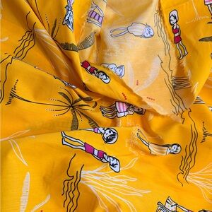 Less than $3 per Yard. 5.47 yards of Poplin Fabric/FunYellow Print/ 58” wide