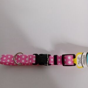 YELLOW DOG DESIGN PINK AND POLKA DOT ADJUSTABLE DOG COLLAR SMALL 10"-14" NWT