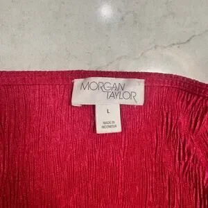 Morgan Taylor Sangria Red Pink Textured Blouse Women's Large Retro Peplum 80s