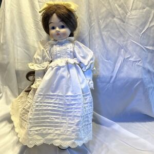 The 1986 Seymour Mann Collectors Guild Doll-126 is a vintage porcelain doll measuring 18 inches tall. This brunette doll comes usually comes with a baby doll, making it a unique and charming addition to any collection.
