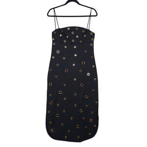 Alexis Malia Midi Dress Black Mirrored Grommet Curved Size S NWT