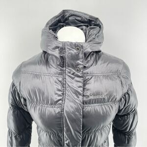 Marmot 650 Goose Down Fill Women’s Gray Full Zip Hooded Puffer Jacket Coat XS