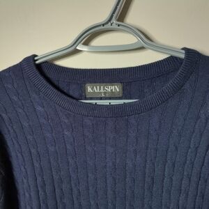 Kallspin Navy Knit Cashmere Wool Blend Classic Crew Neck Sweater Size Large