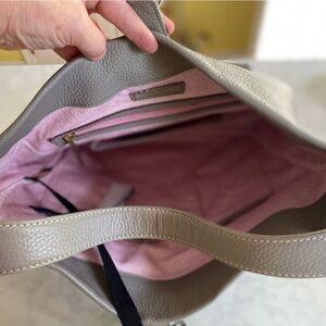 Beautiful pink canvas interior with plenty of organization pockets. Also has lobster claw to hold keys making them easy to find!