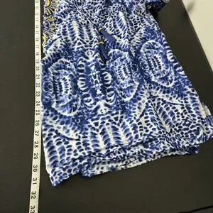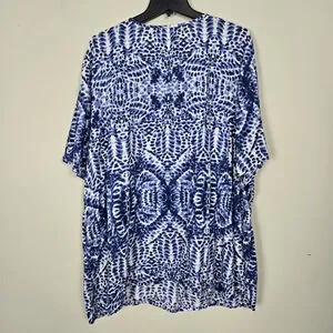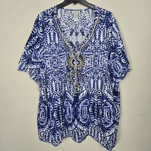 Catherines Womens Fairy Beaded Ikat Tunic Top 3X Blue Boho Hippie Mature Artsy Flowy Beachy Travel Resort