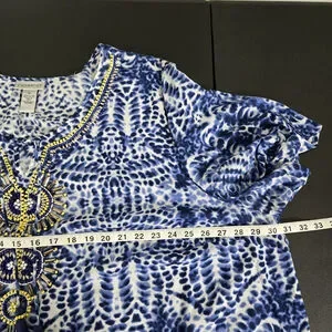 Catherines Womens Fairy Beaded Ikat Tunic Top 3X Blue Boho Hippie Mature Artsy