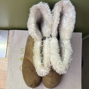 Genuine Suede Tan Boots With Faux Fur Lining-Size 7