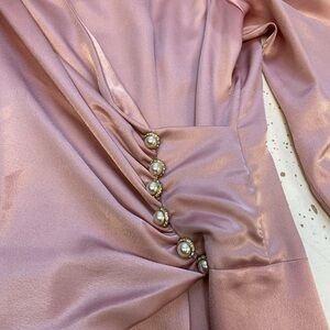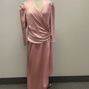 Beautiful pink satin gown by “Bernadette designs”. Tag says size 16 but in my opinion runs a little smaller.