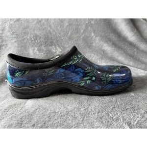 Sloggers Garden Clogs Shoes Womens Size 9 Blue Floral Waterproof Slip On USA