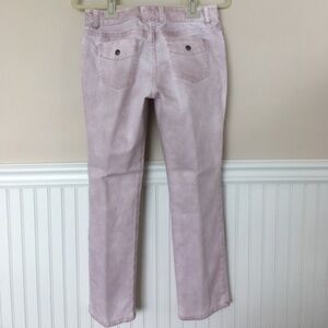 Sophisticated jeans with fly and button front. Faded pink. Measurements approximately: Inseam 26", rise 8-1/2". Content 70% cotton/28% polyester/2% spandex. See size chart for conventional sizing.