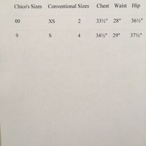 Chico’s 00 = XS/size 2