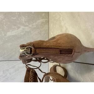 White House Black Market Serenity tan suede lace-up ankle heel sandals Size 8M