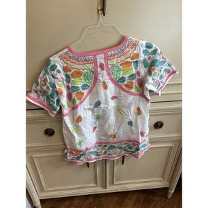 Gretchen Scott Embroidered White Colorful Cotton Tunic Blouse Cotton Preppy Sm