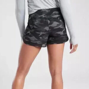 Athleta Women's Medium Mesh Racer Run Short 4" Black Grey Camouflage Camo M Med