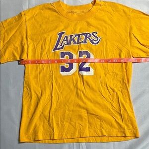 Bright yellow Lakers t-shirt for kids, perfect for young fans. Features iconic team logo and number.
