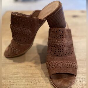 Caslon Maggie Brown Suede Slide braided laser cut heels boho festival 8.5
