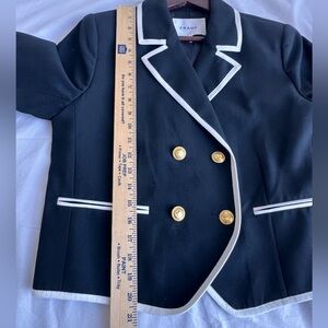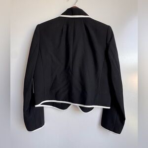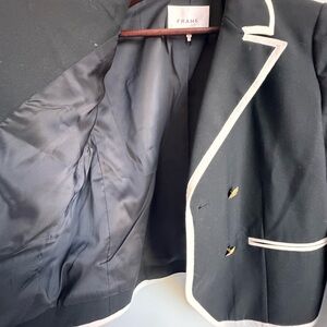 FRAME Contrast-Trim Double-Breasted Blazer Women 10 Black White Wool Sailor gold