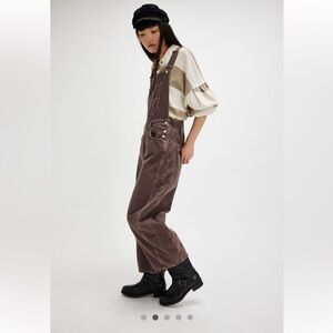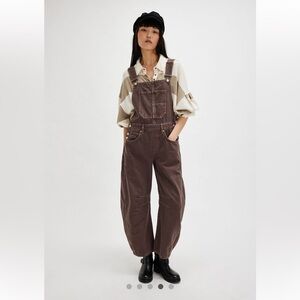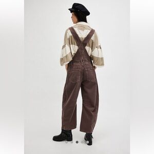 Free People We The Free Good Luck Barrel Overalls-Chocolate Mousse-S-NWT