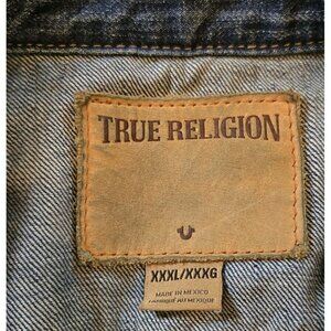 True Religion Mens Danny Denim Jacket XXXL 3X Large Blue Jean Jacket Pockets But