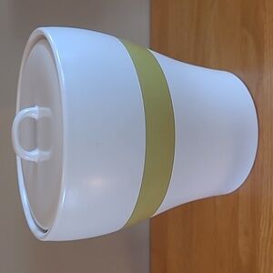 Starbucks retired ceramic coffee canister or cookie jar. Lime green stripe with Starbucks mermaid logo.