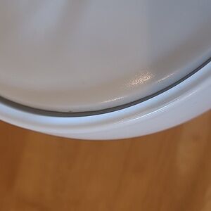 Excellent condition. There are a couple of miniscule superficial chips on the lid (see the last 2 photos). They are difficult to see and not noticeable when the lid is on. There are no cracks or crazing. The price reflects the flaw.