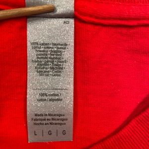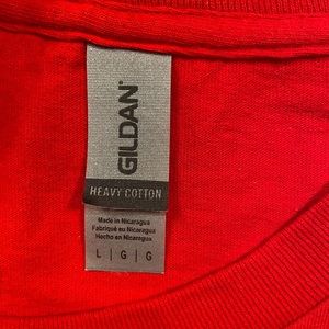Gildan Red Tee Shirt, Crew neck, Heavy Cotton, short sleeve, size Large, unisex