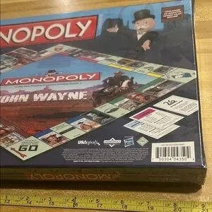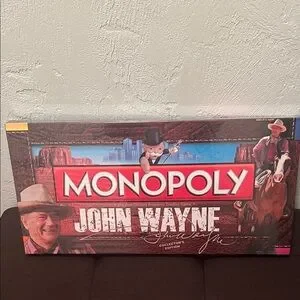 Monopoly John Wayne Collector's Edition board game. Features iconic imagery and design. Perfect for fans and collectors.