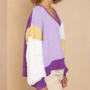 POL Cozy Purple & Gold V-neck Sweater Sz S