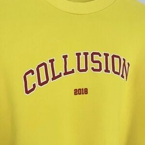 Collusion women's cropped oversized sweatshirt in a bright yellow color. Size 0.