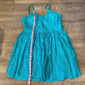 As U Wish Teal Lace Mini Dress Bohemian Coastal Size Large