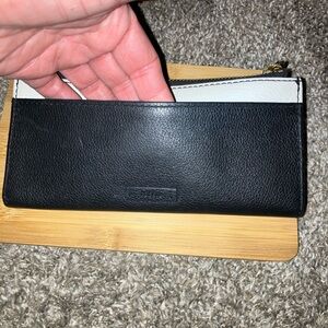 Fossil Black & White Leather Tab Wallet 7.5” X 3.5”