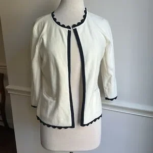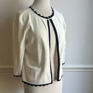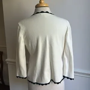 1901 knit Ivory black cotton Scallop Edge Open Front cardigan sweater medium EUC