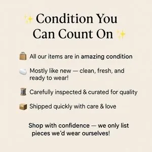 Excellent used condition. No rips, snags stains or other flaws. Ready to ship from smoke free pet free home.