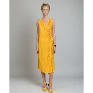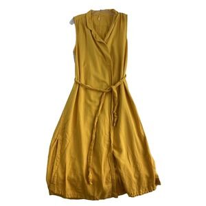 Free People Midi Wrap Dress Women Sz M Yellow Linen Cotton Blend Coastal