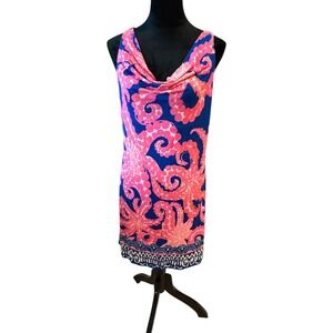 Lilly Pulitzer Kyra Silk Jersey Dress Womens M Blue Pink Octopus Mocean Print