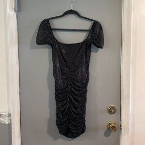 Lucy in the Sky Black Ruched Mini Dress Size L