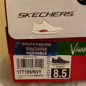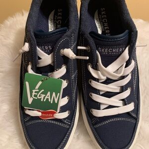 SKECHERS ladies Arcata Vegan Navy Blue Arch Fit sneakers size 8.5 NIB NWT