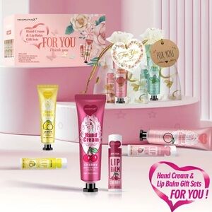 96 piece hand cream and lip balm Gift set NEW with thank you cards and bags