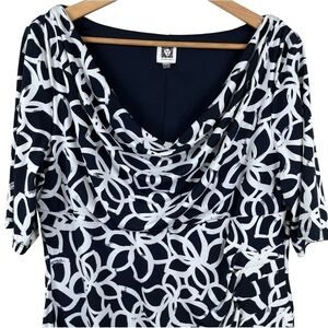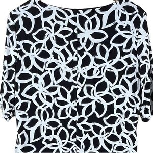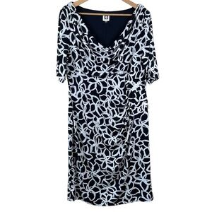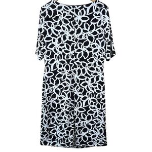 Anne Klein Black & White Floral Patterned Stretchy Dress with Side Ruching Sz 16