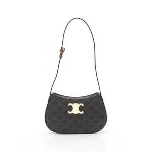 Celine TILLY Triomphe Shoulder Bag canvas leather brown