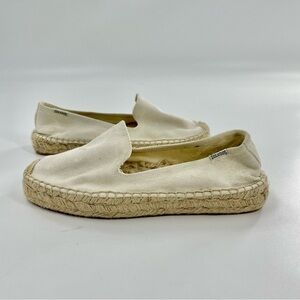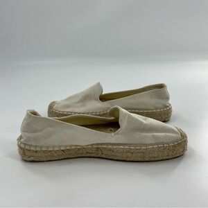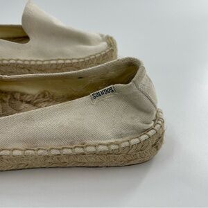 Soludos Women's Custom Smoking Slipper Neutral Espadrille. Canvas top and woven inside and bottoms. They are pre owned with lots of life left. A few very minor spots on top (i have not stain treated)