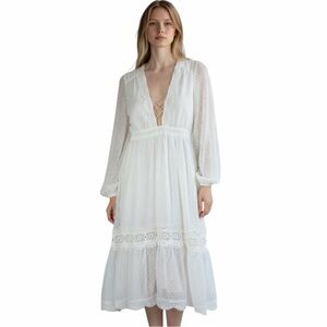 NWT Showpo Always Dreaming Dress in White Size 6 Midi Length Swiss Dot