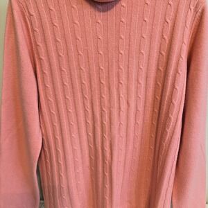 Izod Womens XL Pink Cable Knit Cowl Neck Sweater Preppy Soft Classic Career