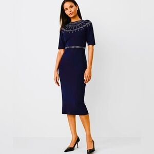 NEW Ann Taylor navy mock neck embellished knit dress