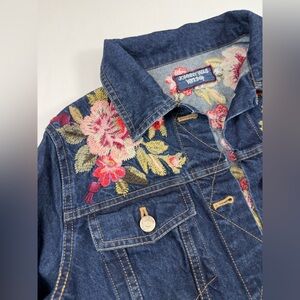 JOHNNY WAS Womens Embroidered Denim Jacket Floral Roses Small Boho Cottagecore Western Romantic Roses Festival Rodeo