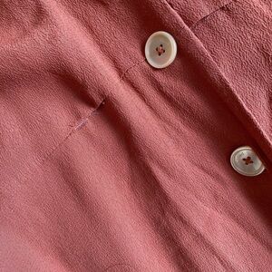 This is a vintage-inspired, button-front shirt dress with a self-tie belt, a notched lapel and inseam pockets. It's made from drapey fabric with a subtly pebbled texture.