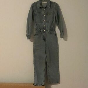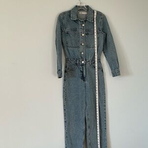 Chic and effortless denim one-piece from ZARA in size XS.    •   Button-up front    •   Long sleeves    •   Cinched waist with belt loops    •   Straight leg fit    •   Classic light/medium wash denim The perfect piece for a casual day out, styled with sneakers or boots. Timeless, flattering, and versatile. It is in EUC with no rips, holes or stains. Measurements are shown in pictures. #Zara #DenimJumpsuit #BoilerSuit #UtilityStyle #ZaraCanada #EffortlessStyle #StreetStyle #OnePieceOutfit #WardrobeStaple