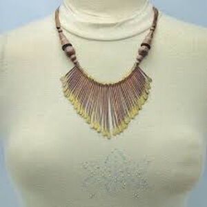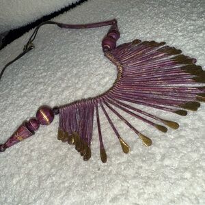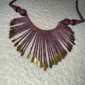 This stunning necklace features a unique design with elegant purple and gold tones. Perfect for adding a touch of sophistication to any outfit.