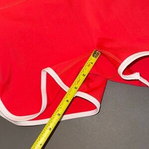 Vibrant red shorts with sleek white piping. Perfect for active wear. Comfortable fit.